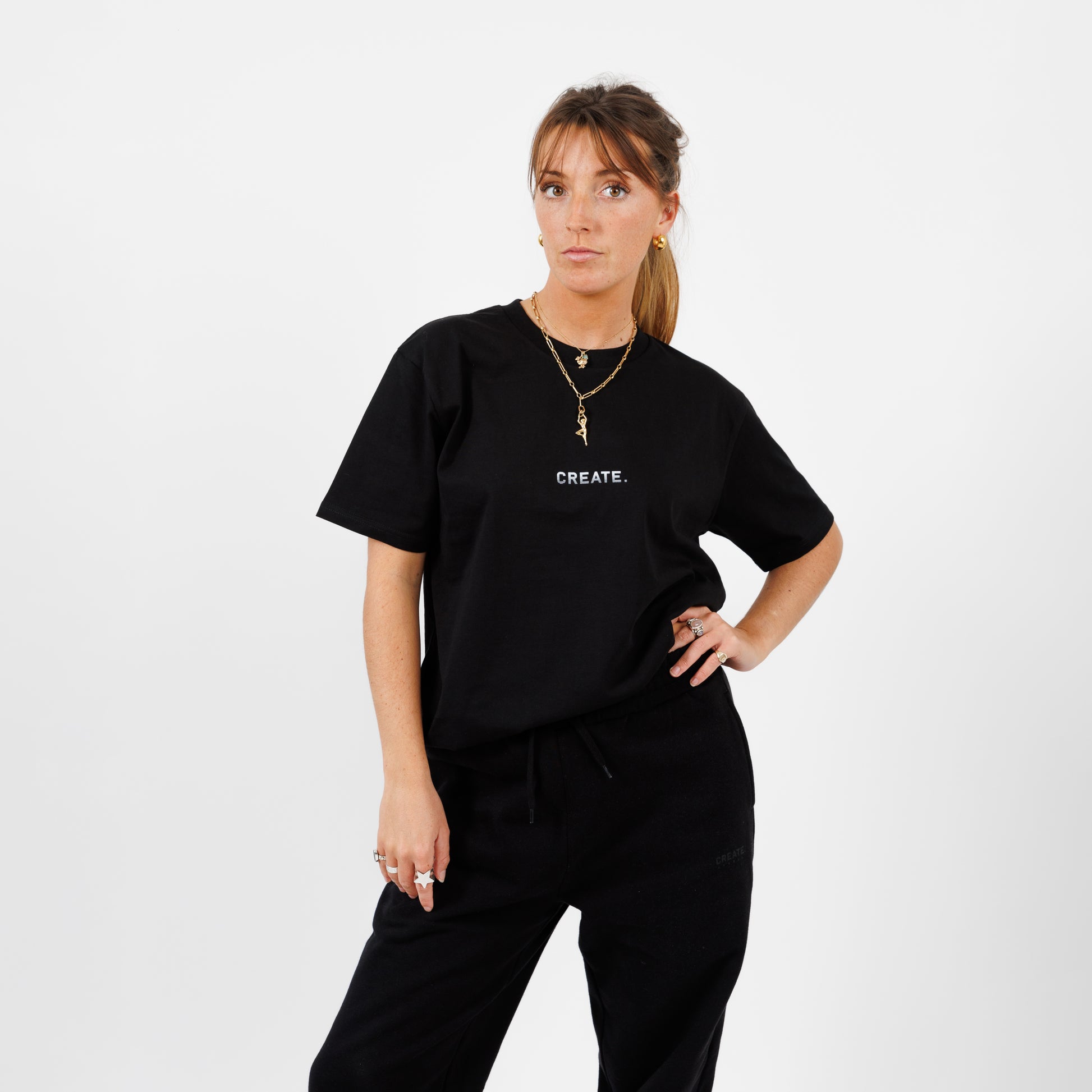 The CREATE. Essentials T-shirt.  100% 220 GSM cotton.  Relaxed fit, order in your normal size.