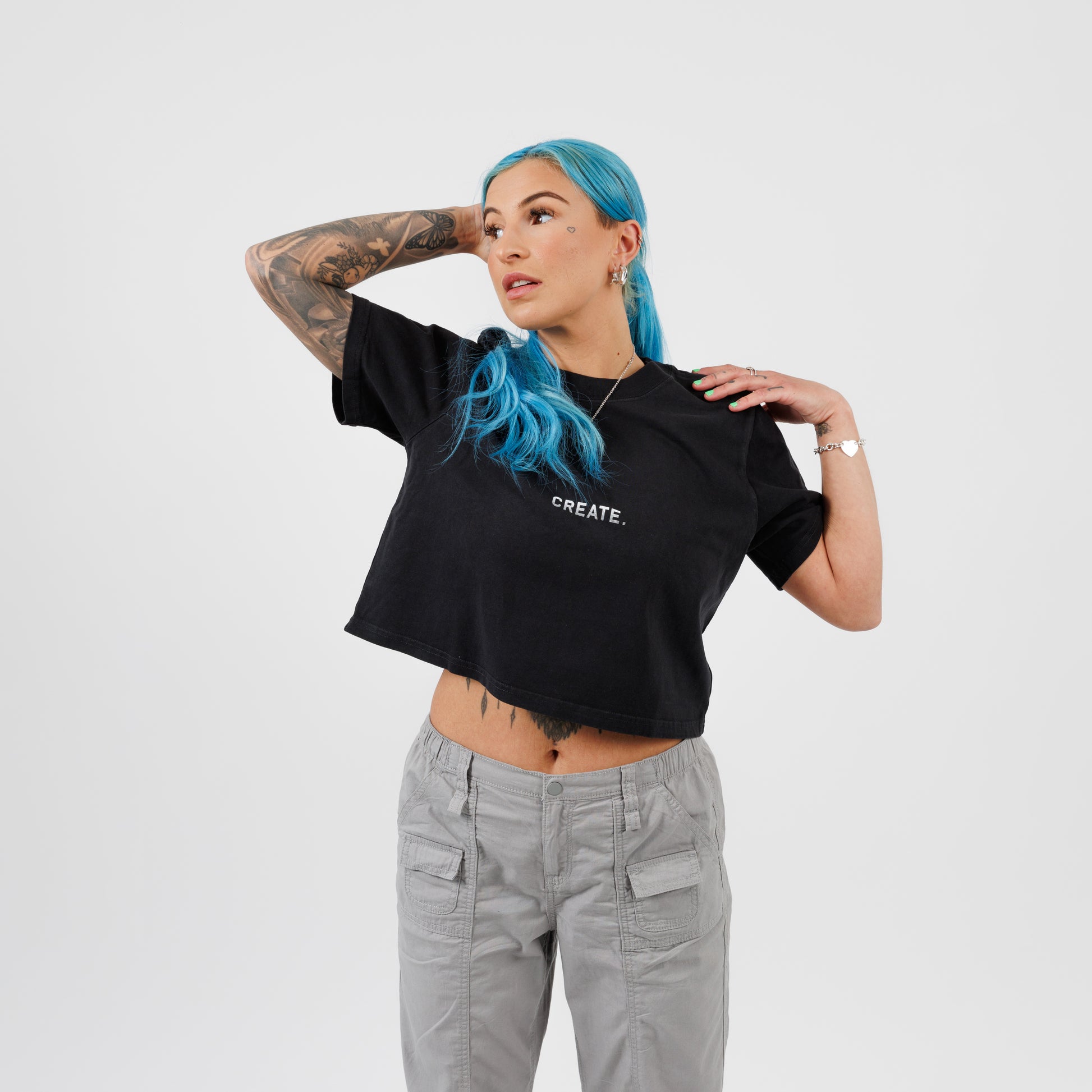 The CREATE. Essential Crop T.  100% 240 GSM cotton.  Oversized fit, dropped shoulders.