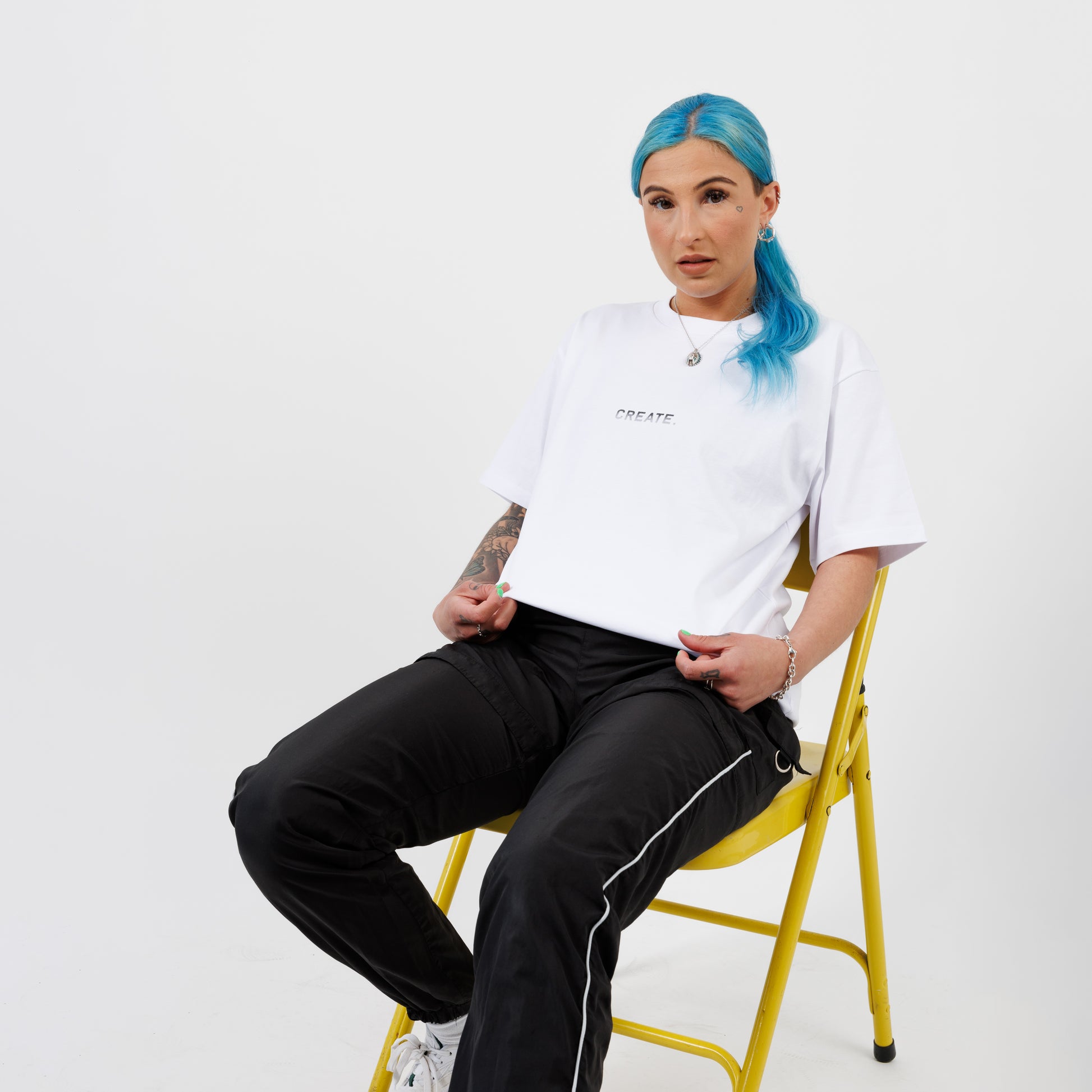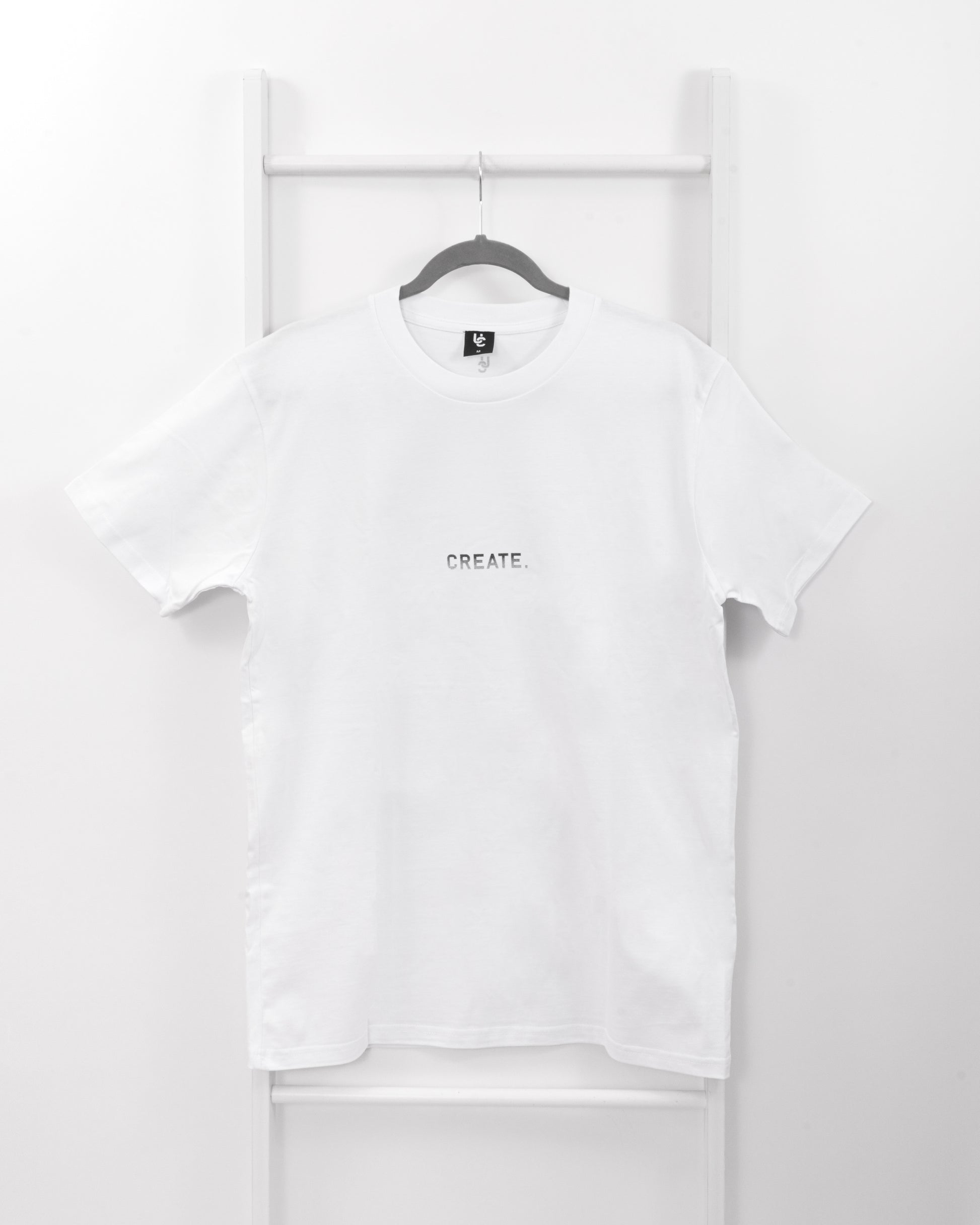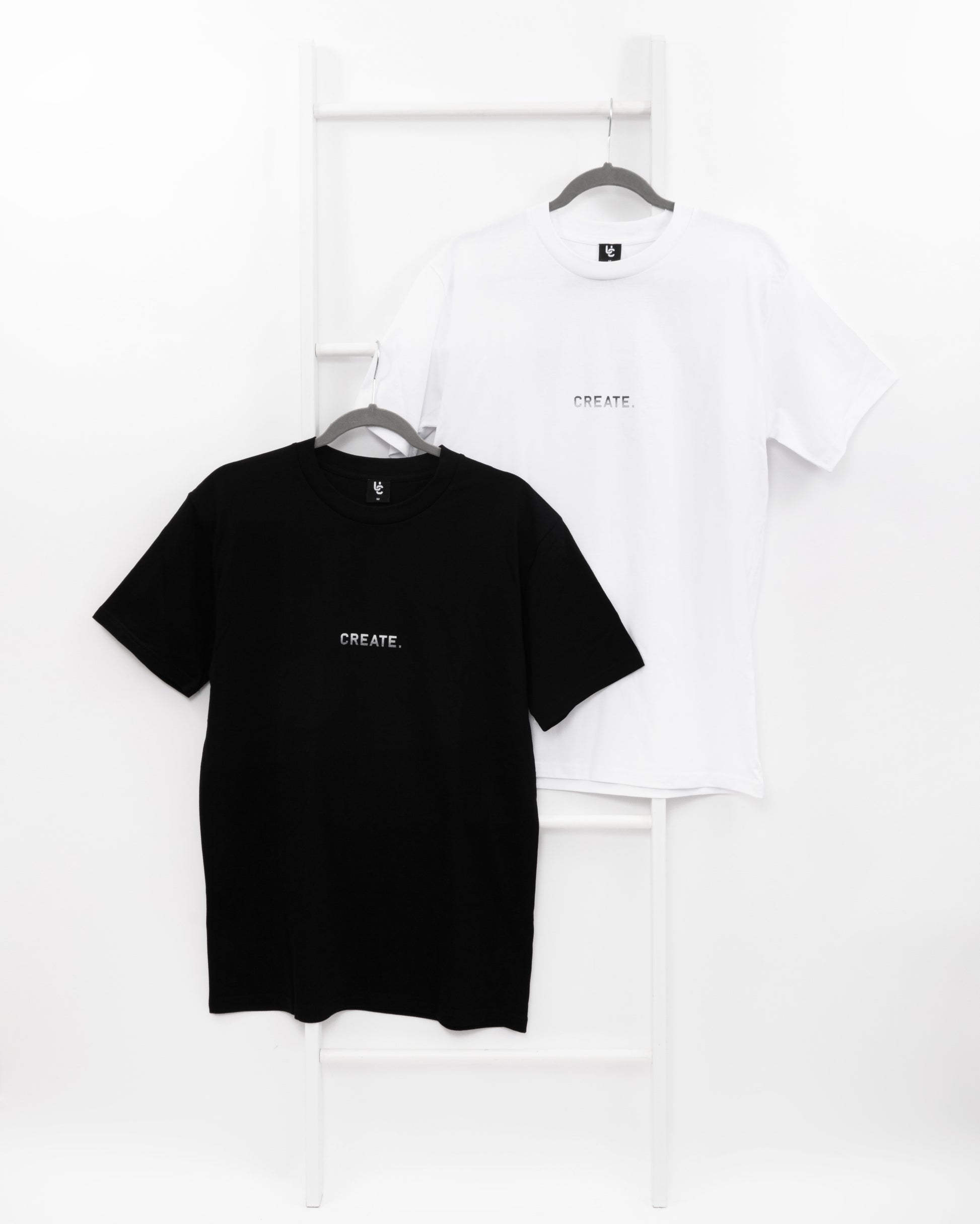 The CREATE. Essentials T-shirt.  100% 220 GSM cotton.  Relaxed fit, order in your normal size.