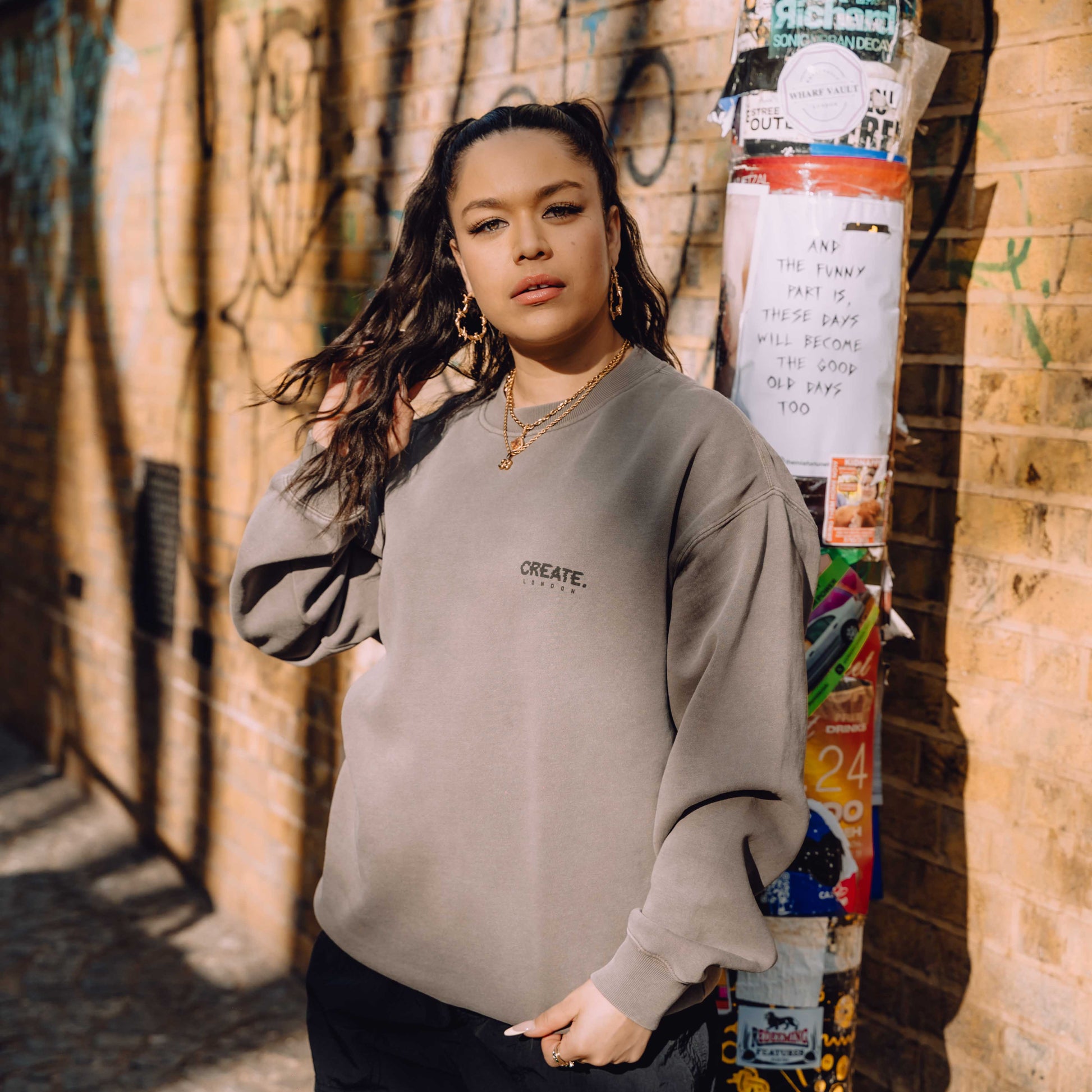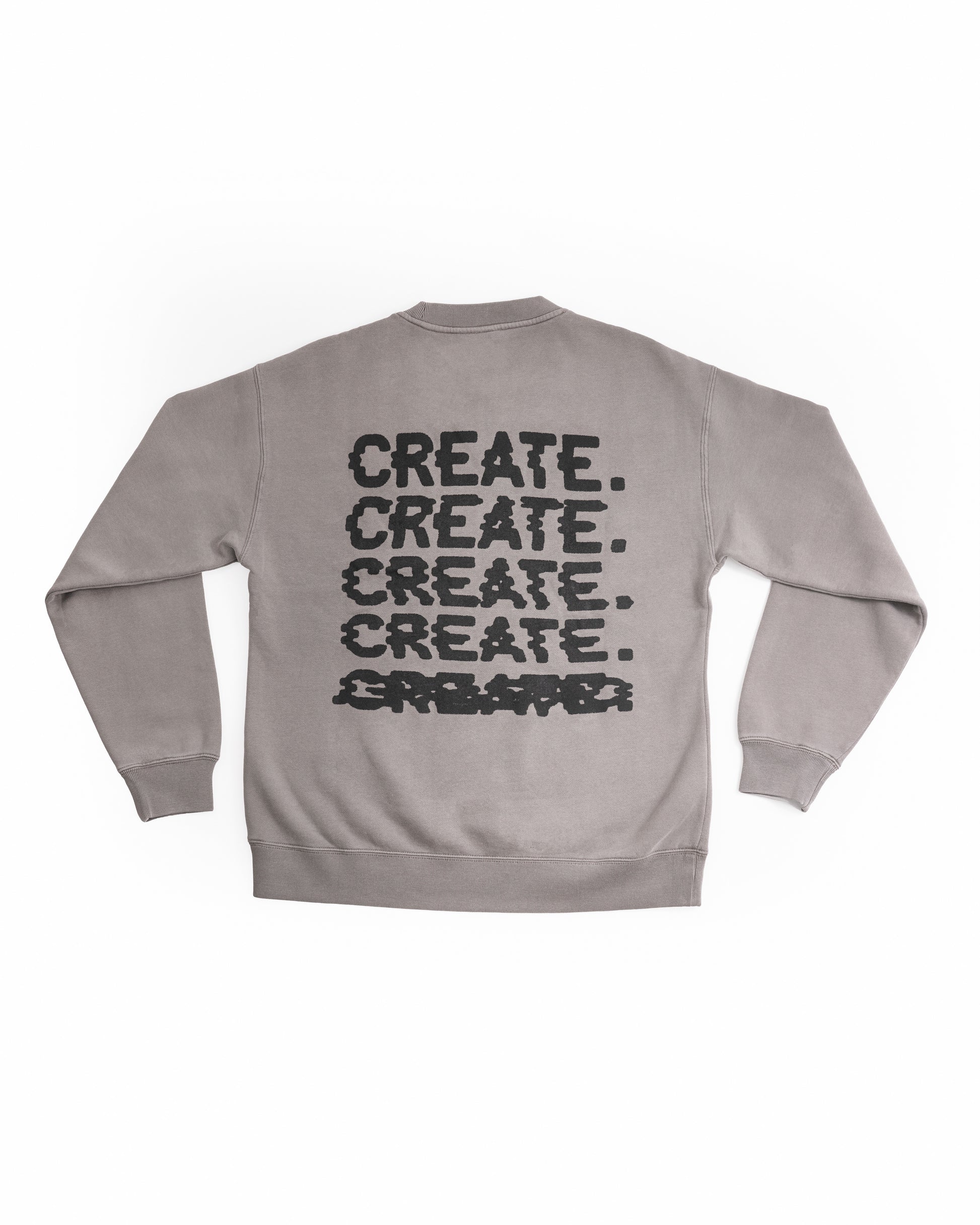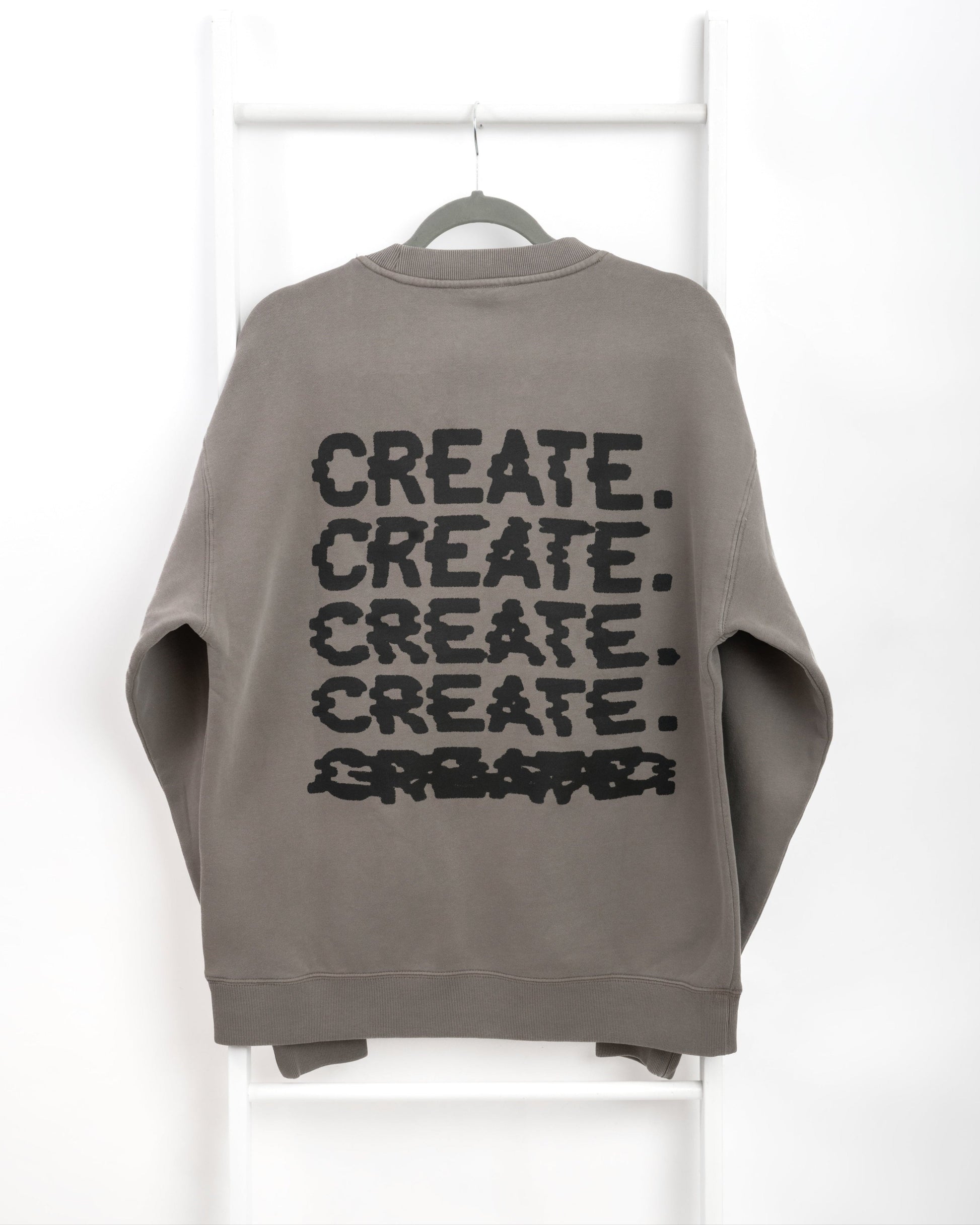 Glitch effect CREATE. London small left chest print. Large CREATE Glitch print on the back.  Comfort, identity, statement.