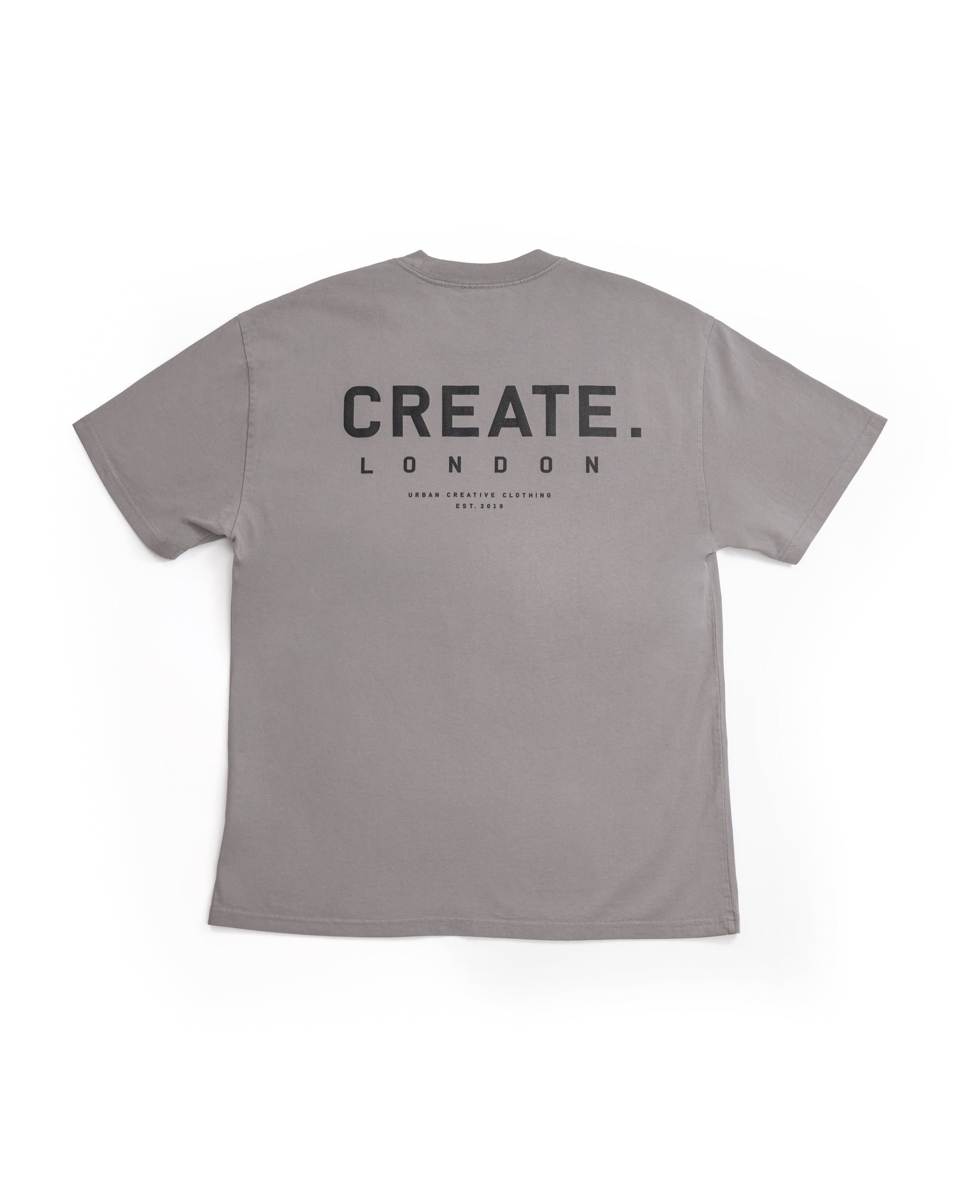 CREATE. London small centre chest print. Large CREATE. London Heritage print on back.  Comfort, identity, statement.