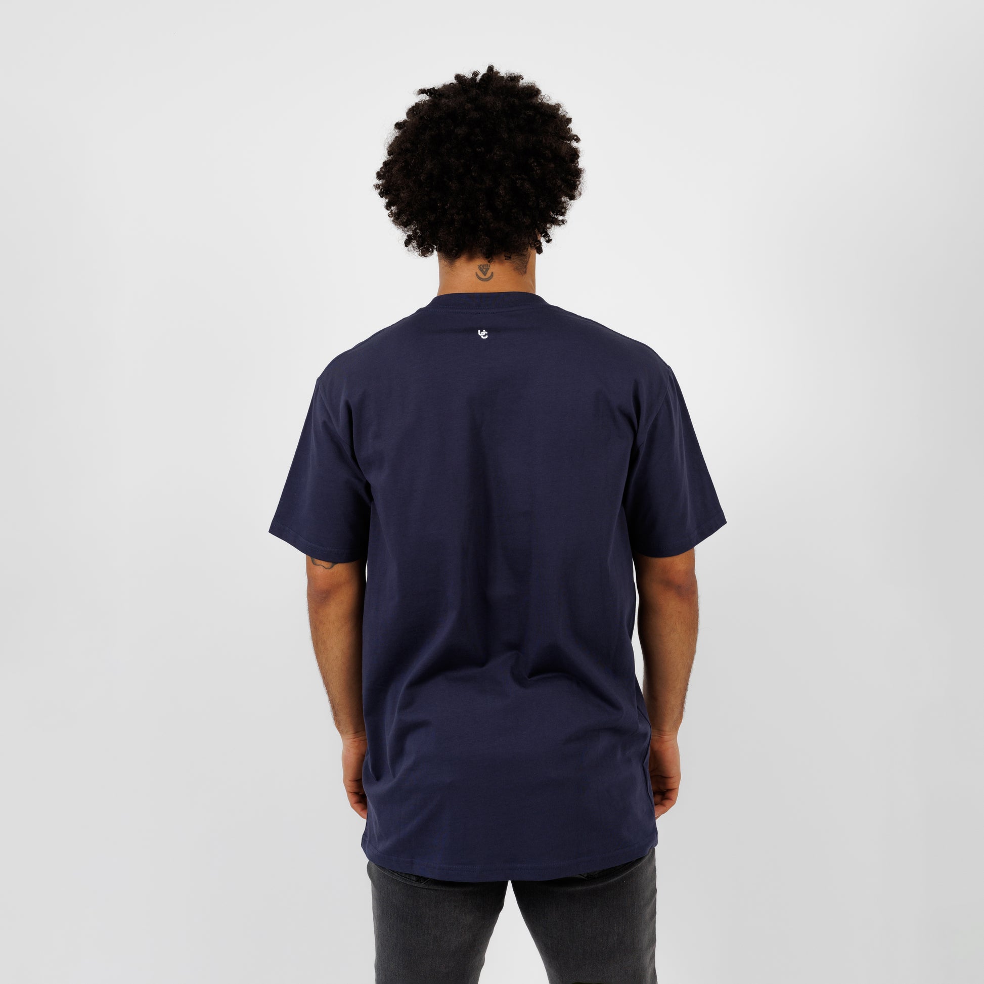 The Small Steps Essentials T-shirt.  100% 220 GSM cotton.  Relaxed fit, order in your normal size.